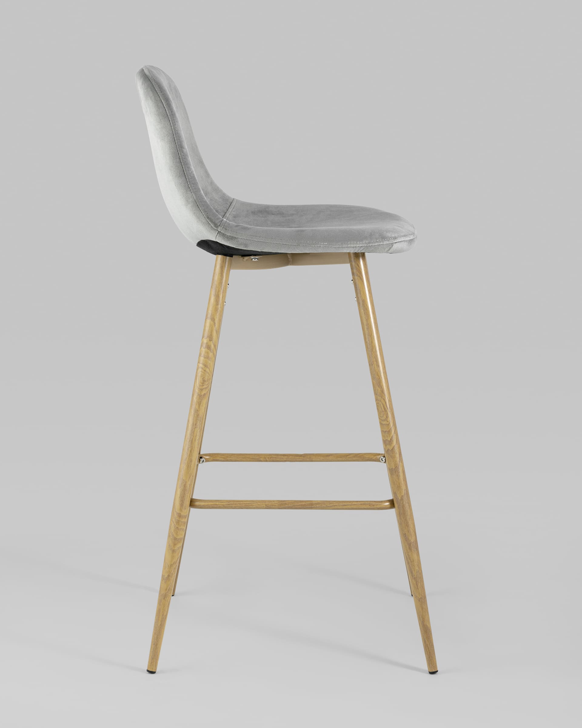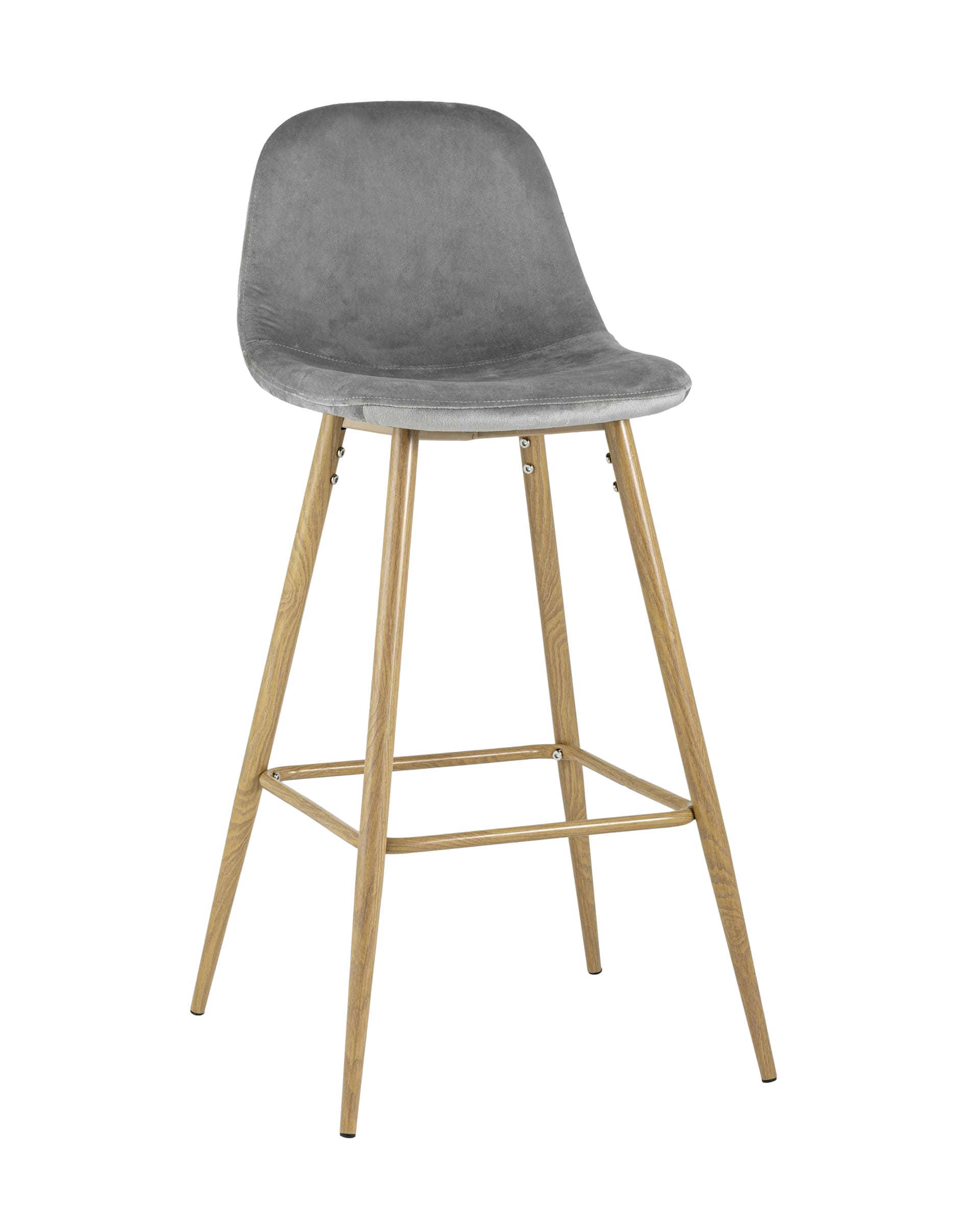 Стул барный Валенсия велюр серый ножки цвет дерево