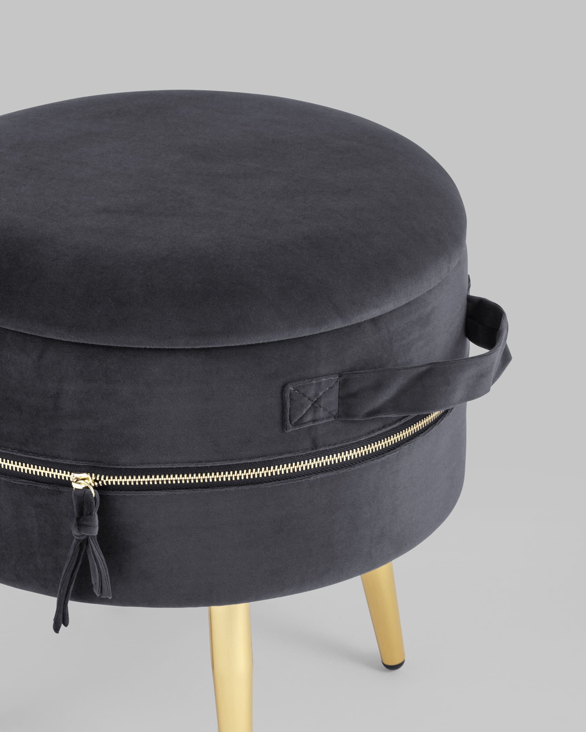 Тильда с ящиком велюр антрацит ножки из металла цвет золото |